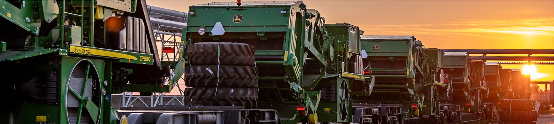 60′ platform wagons (model 13-935A-04): These wagons with wooden floor are well suited for the transport of crawler trailers or wheeled equipment.